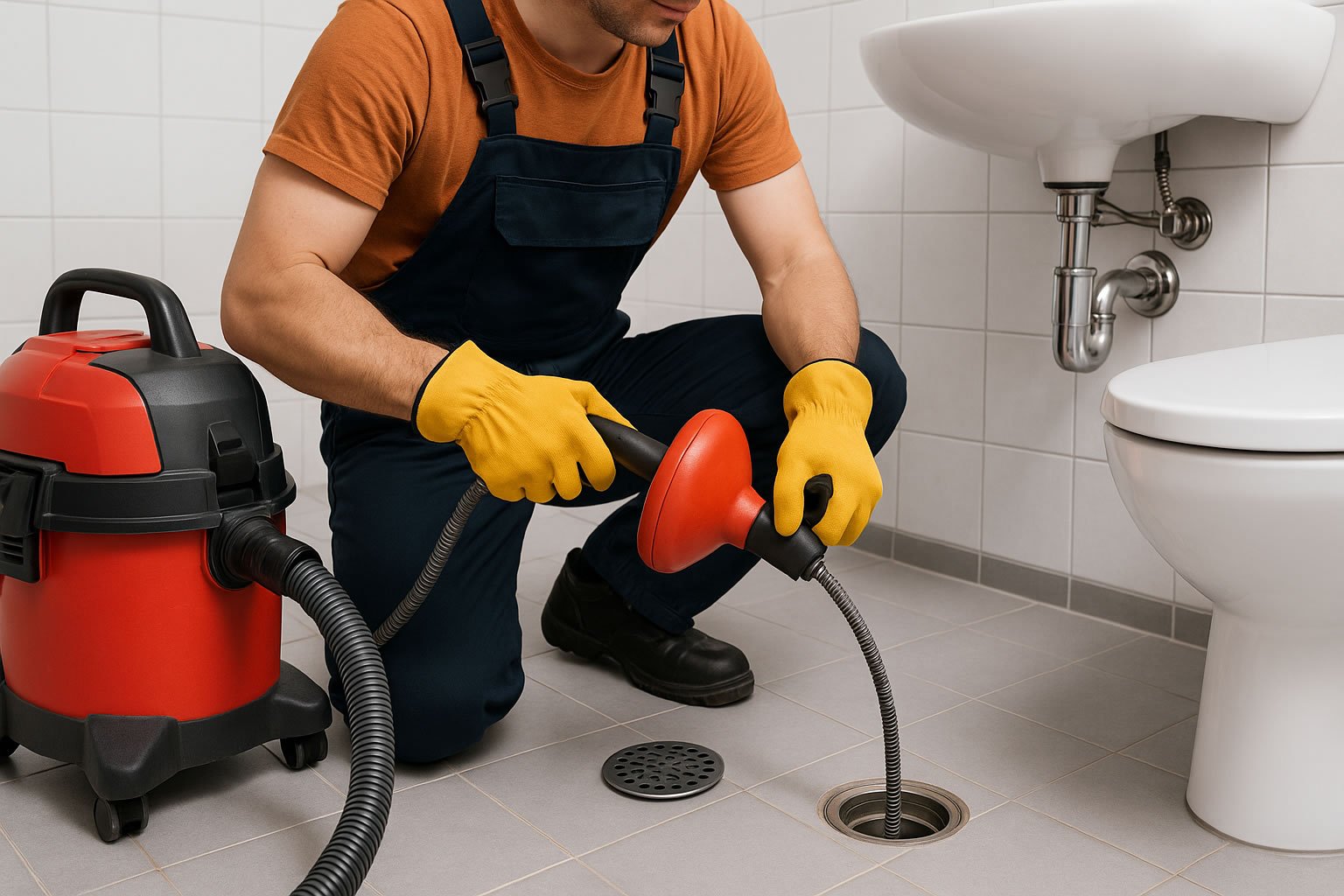 Desentupimento de pias, ralos, vasos sanitários e redes de esgoto;